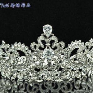 Free Shipping Trendy Cute Hi-Q Crystal Zircon Symmetric Tiara Crown Wedding Ball Jewelry 8648