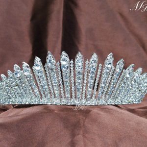 Fantastic Large 5.25″ Pageant Tiaras Handmade Brides Crowns Clear Rhinestone Silver Headband Jewelry Bridal Wedding Prom Party