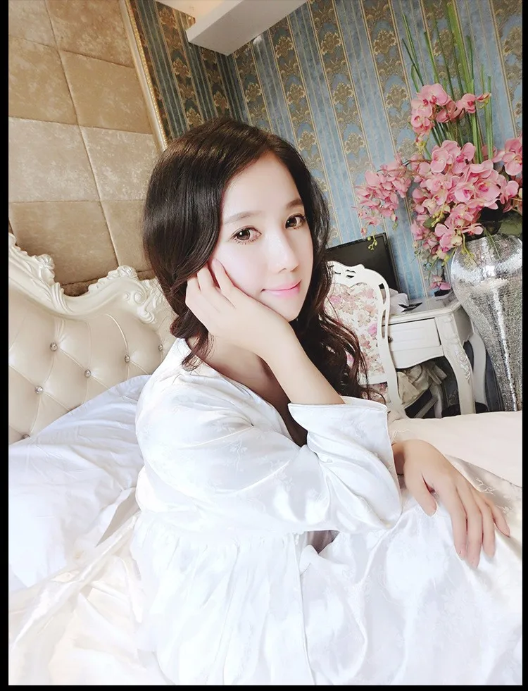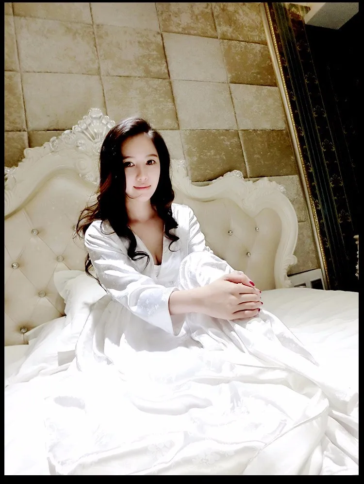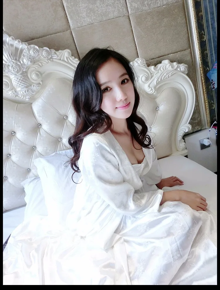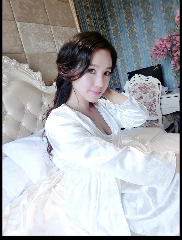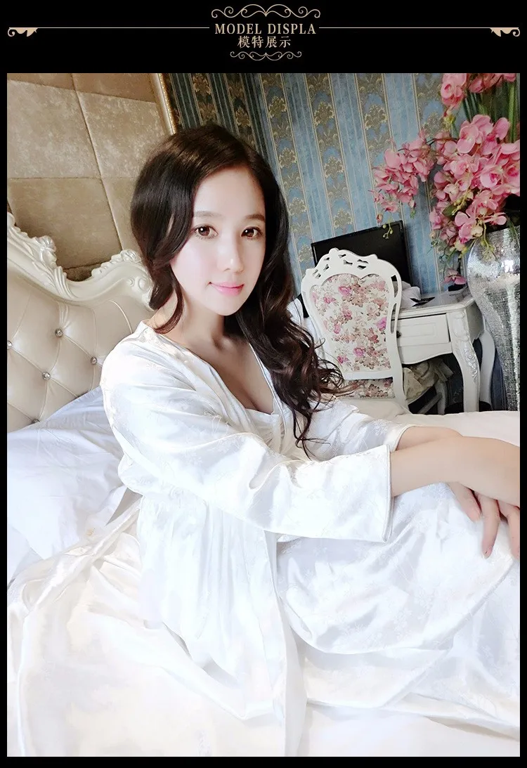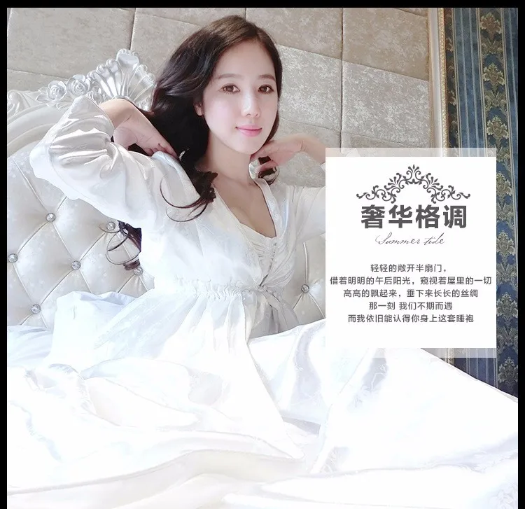2017 High Quality Silk Sleepwear Women Long-sleeve Nightgown Two Pieces Set Queen Robe Dress Gorgeous Vestidos Sexy Lingerie
