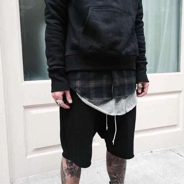 2017 New black shorts kanye west cool sweatpants 30-40 mens jumpsuit HIPHOP rock stage urban clothing owens dress harem