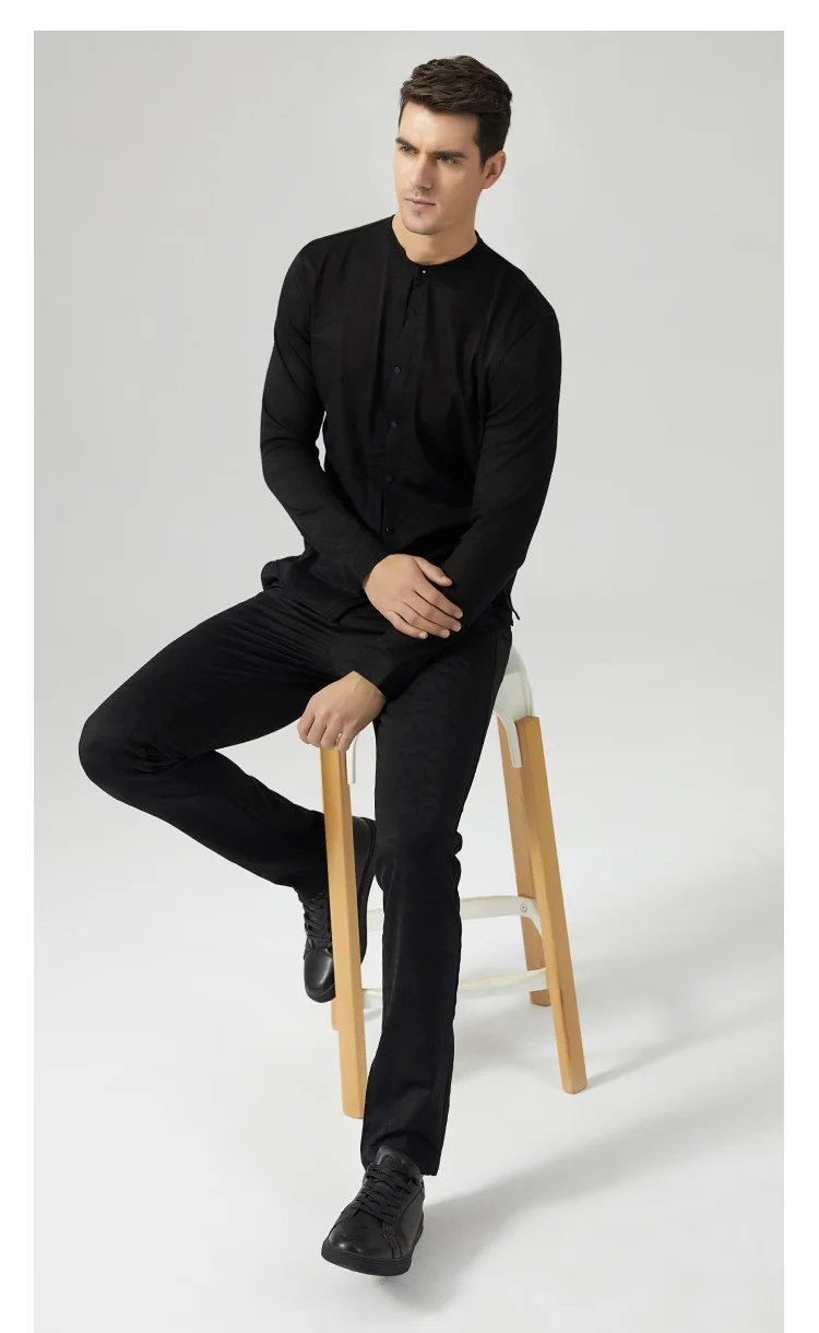 2017 new style mens collarless shirts black fashion mens long sleeve dress shirts slim fit high quality