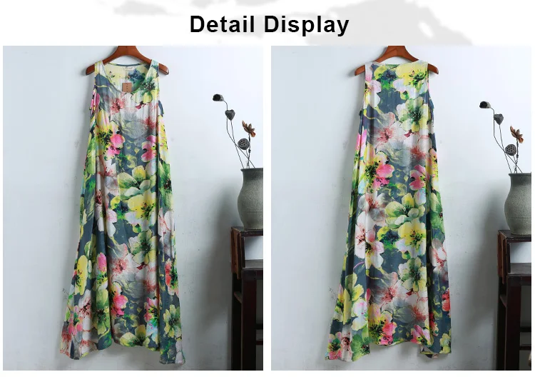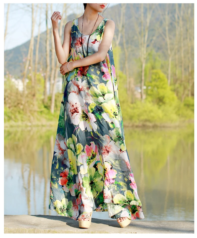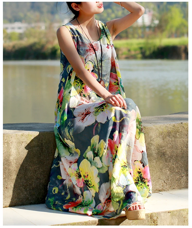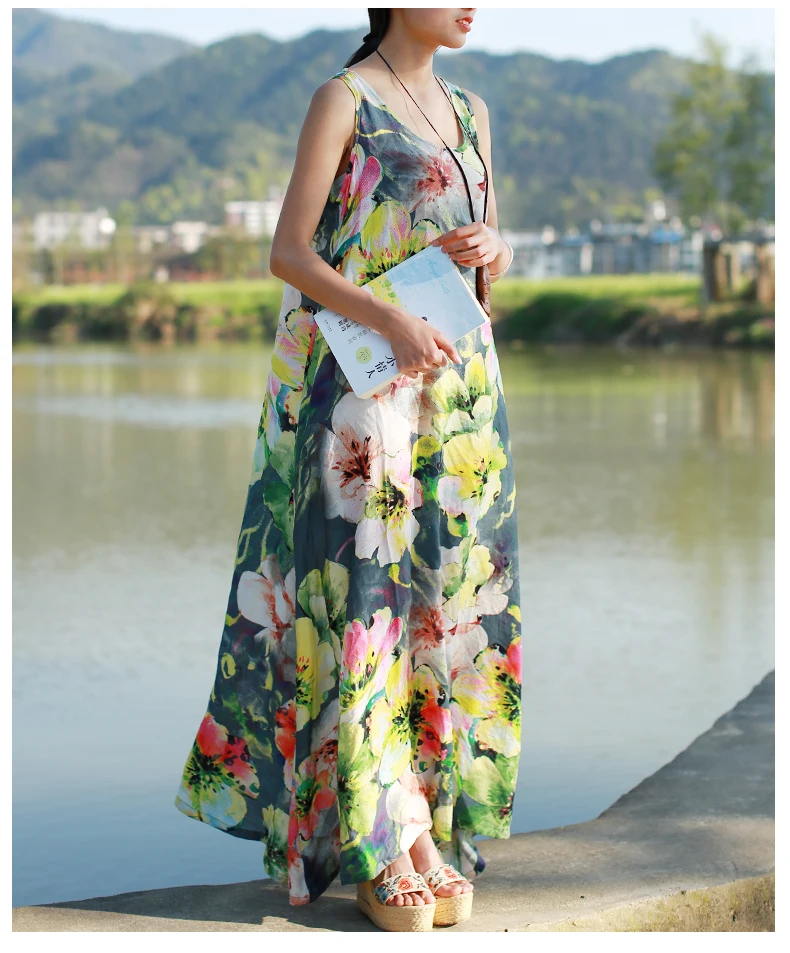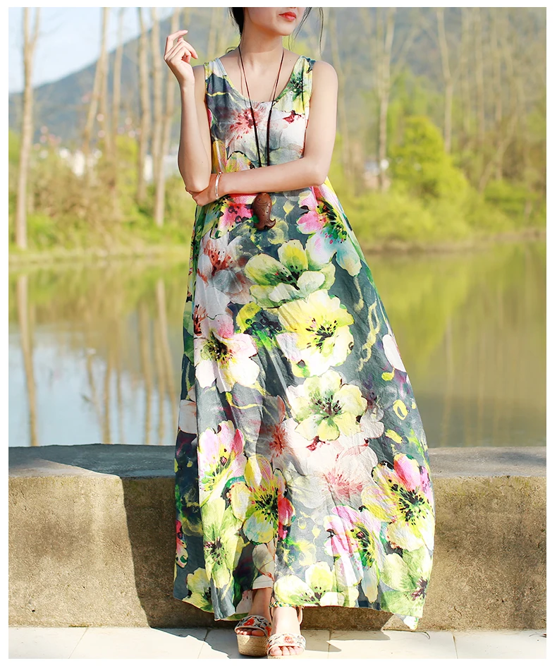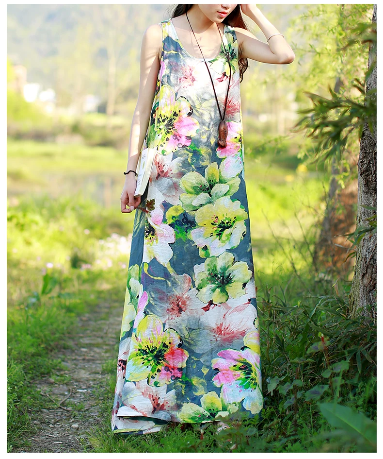Pullover, O Neck, Sleeveless, Pockets, Sundress, Maxi Dress, Women Dresses, Folk Style, Gown, Tank Dress, Robe Femme, Floral Dress, Elbise, Jurken, Vestidos |