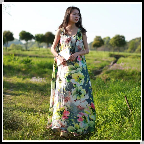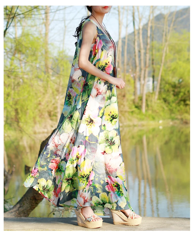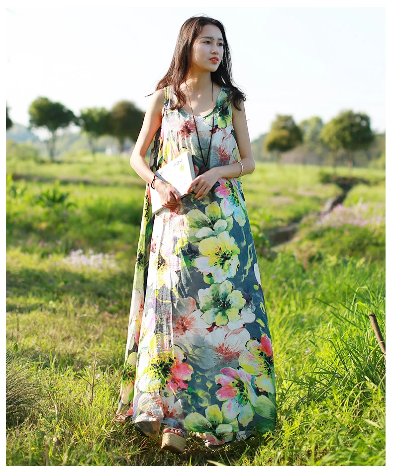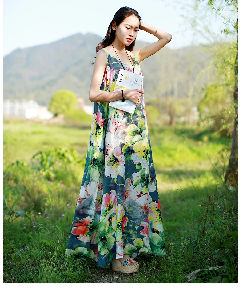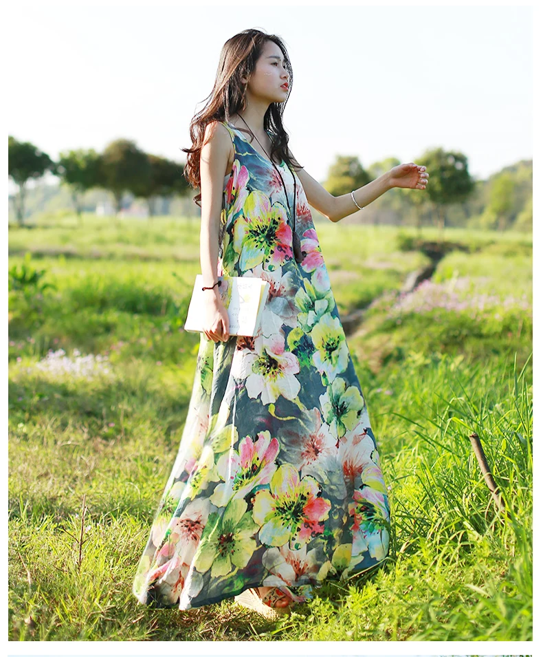 2017 Summer Beach Slip Dress Women Maxi Dresses Long Gown Floral Tank Dress Folk Style Sundress Vintage Robe Femme Vestidos