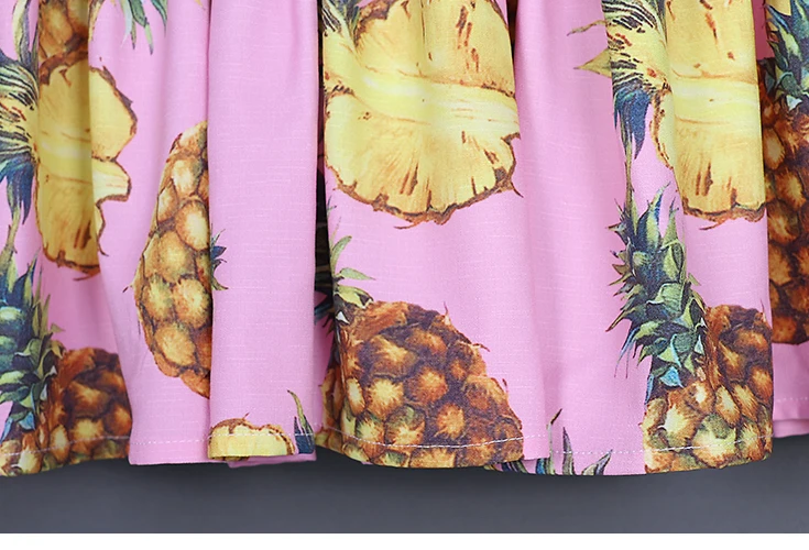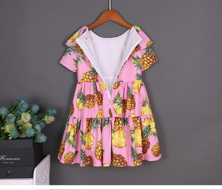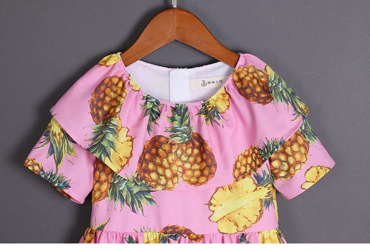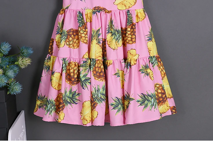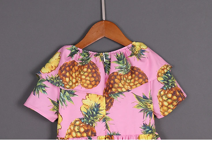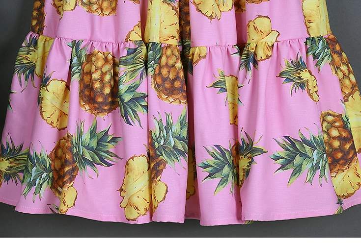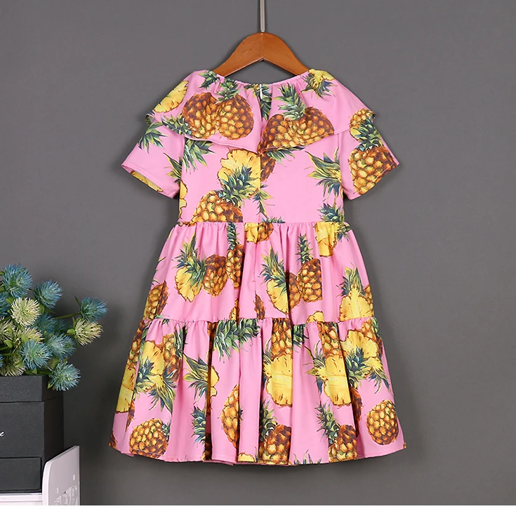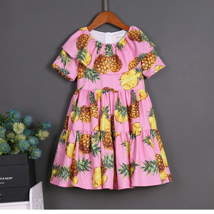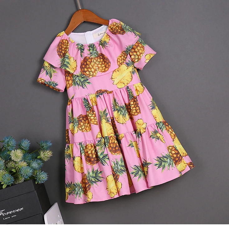 Element: loose flouncing collar big pleated patchwork short sleeves style pineapple prints cute casual dresses , one-piece set girls beach skirts