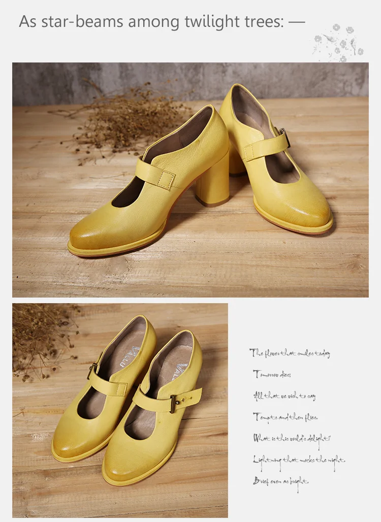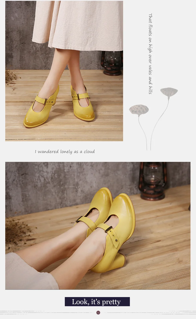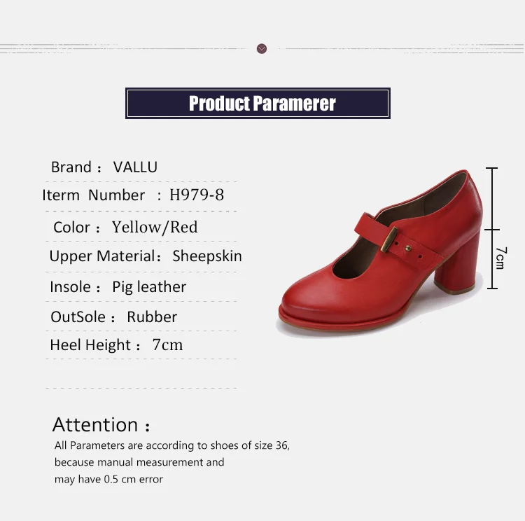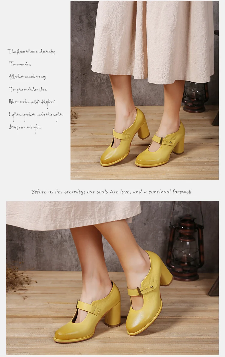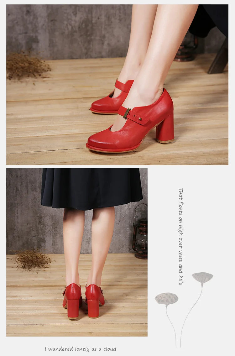 2017 VALLU Women Pumps Genuine Leather High Heel Shoes Genuine Leather Chunky Heels Buckle Handmade Vintage Style