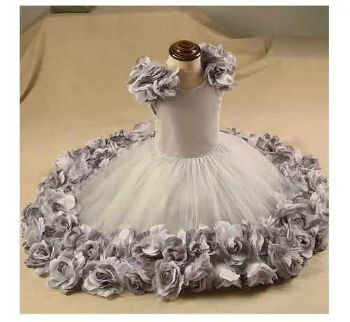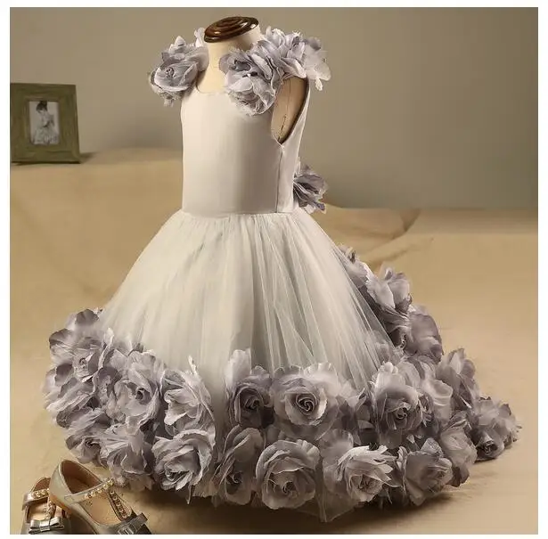 Baby Girls Pageant Formal Dresses 2017 Flowers Gown Infant Girls Princess Tutu Dress Gauze Kids Birthday Wedding Long Dresses