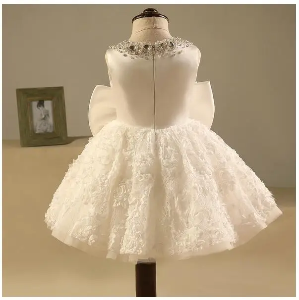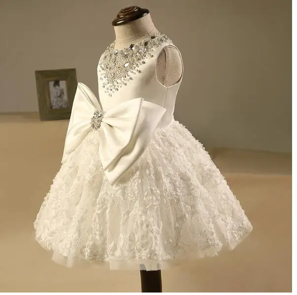 Baby Girls Pageant Formal Dresses 2017 Pearl Collar Big Bow Infant Girls Princess Tutu Dress Gauze Kids Birthday Wedding Dresses