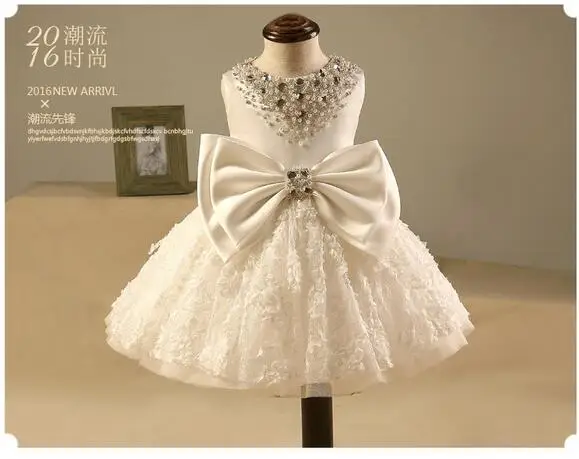 Baby Girls Pageant Formal Dresses 2017 Cute Pearl collar Big Bow Infant Girls Princess Tutu Dress Gauze Kids Birthday Wedding Dresses , the dress have size:80-90-100-110-120-130-140-150 all in stock , if you would like to buy big size please under the order make which size.