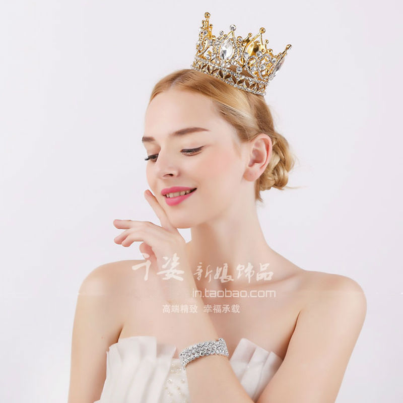 Fine Jewelry Bride Wedding Crown Diademe Hair Jewelry Bijoux Women Tiara Gilded Green Rhinestone Hair Accessories Tiara Crown