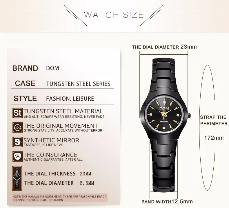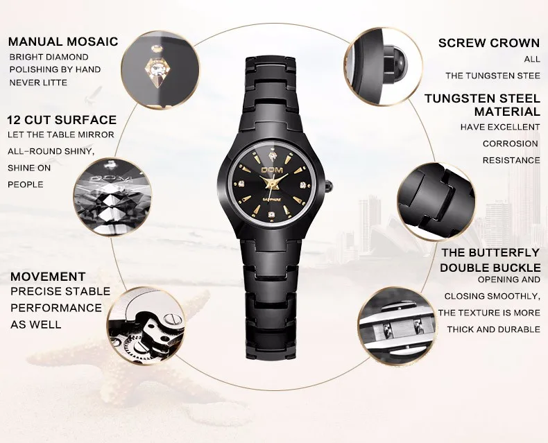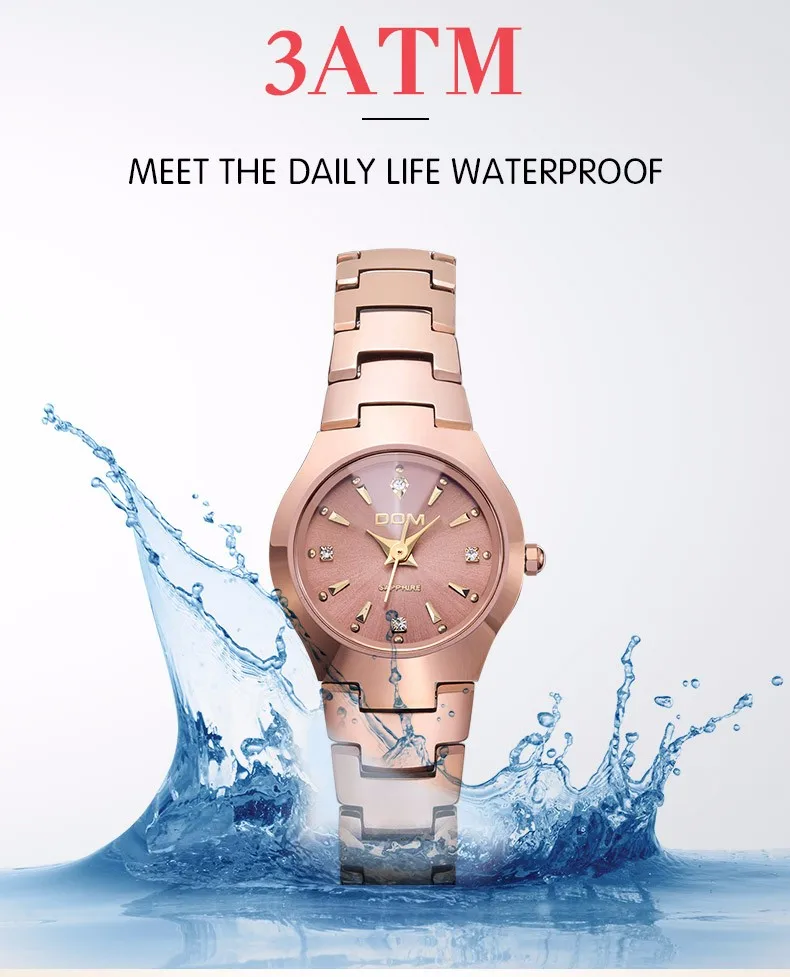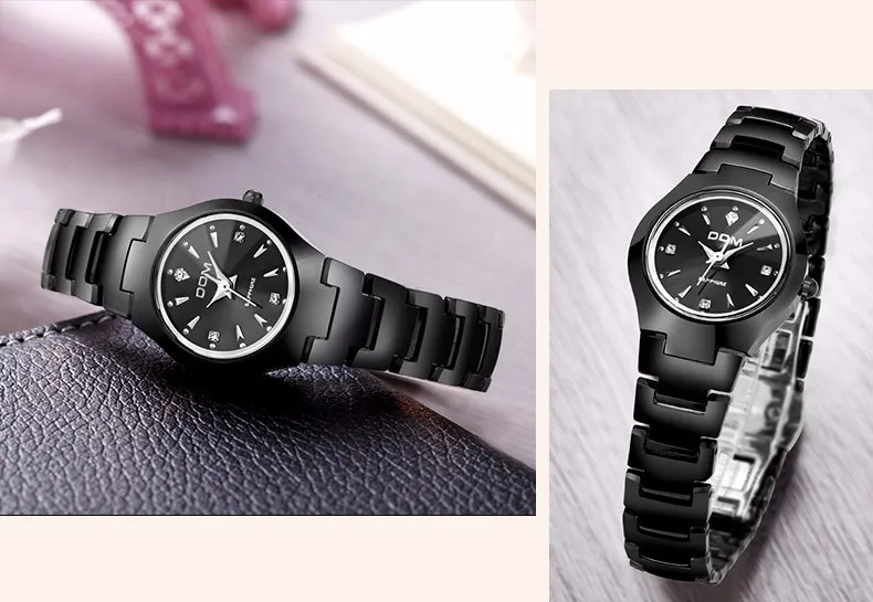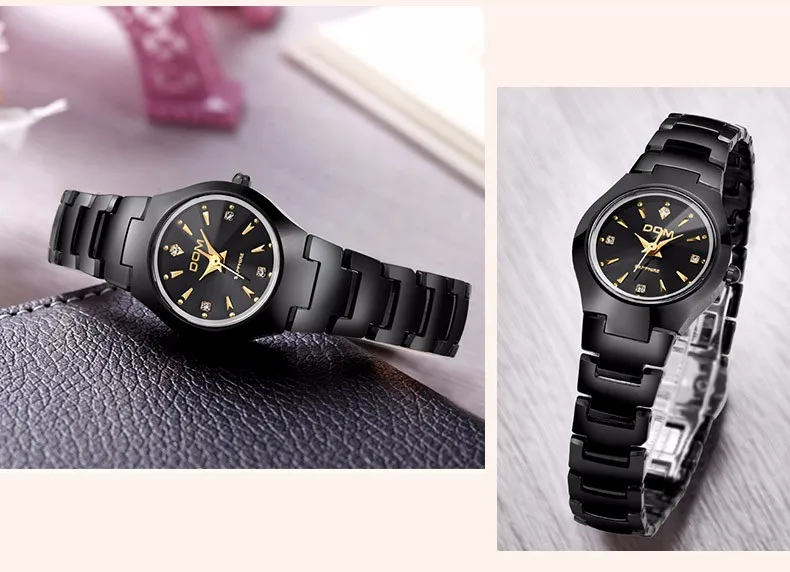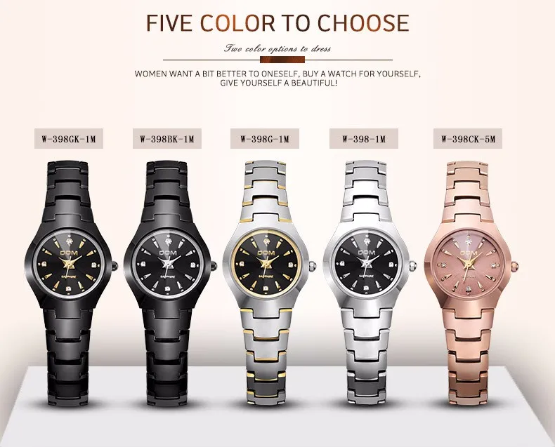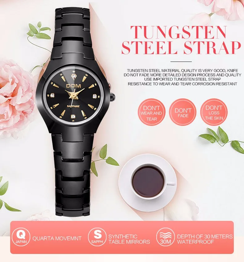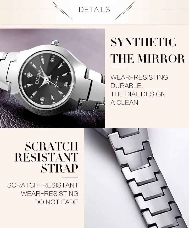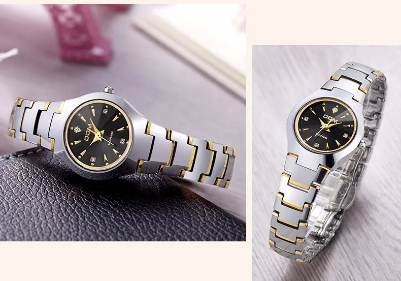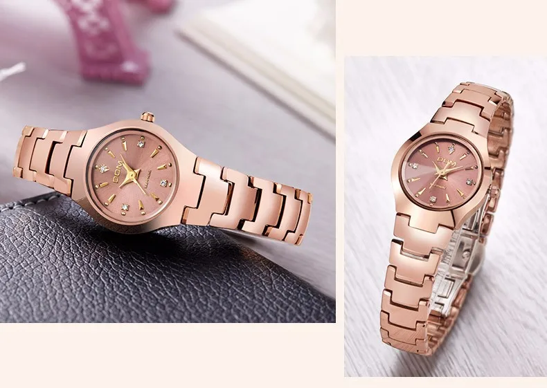 DOM Fashion Watch Women Causal Dress Quartz Watches Gold Silver Waterproof Tungsten Steel Bracelet Watches w-398