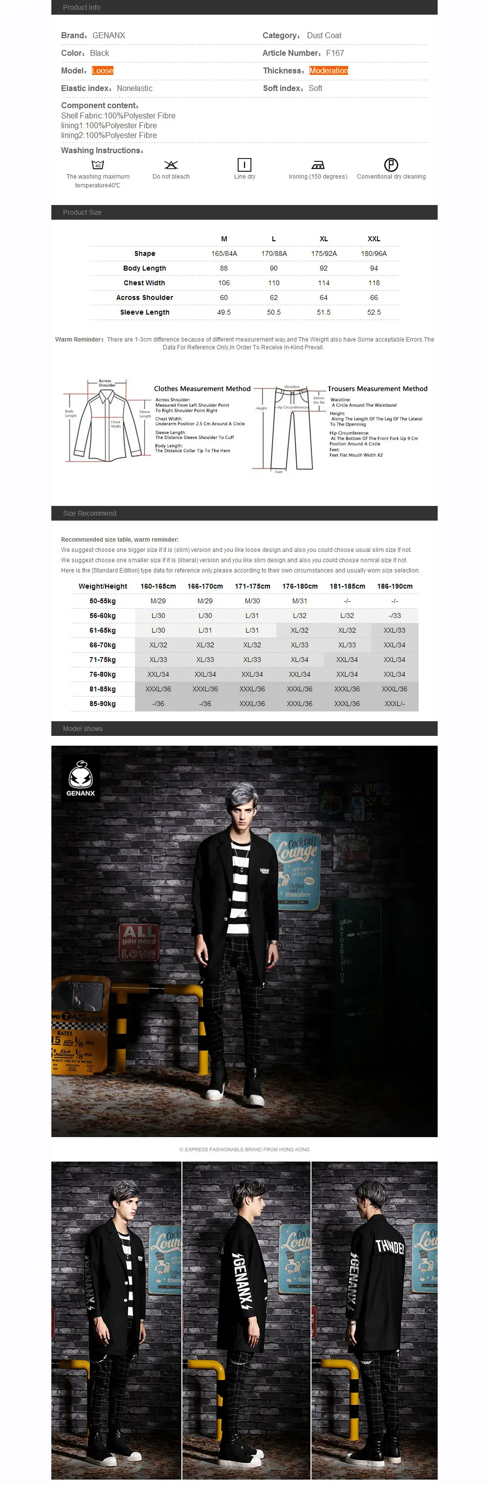 Genanx Brand Coat The Stylist Male Tide New 2017 Spring Long Dress Men’s Coat Long SIZE M-XXL