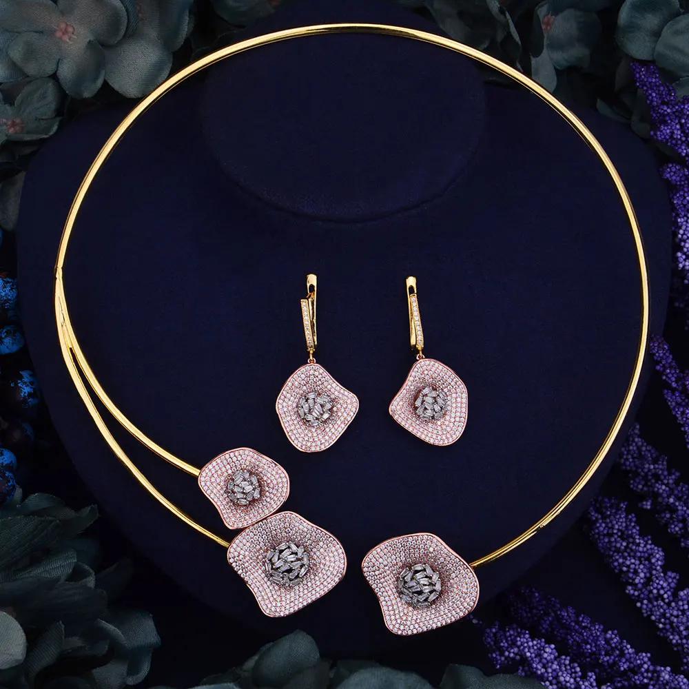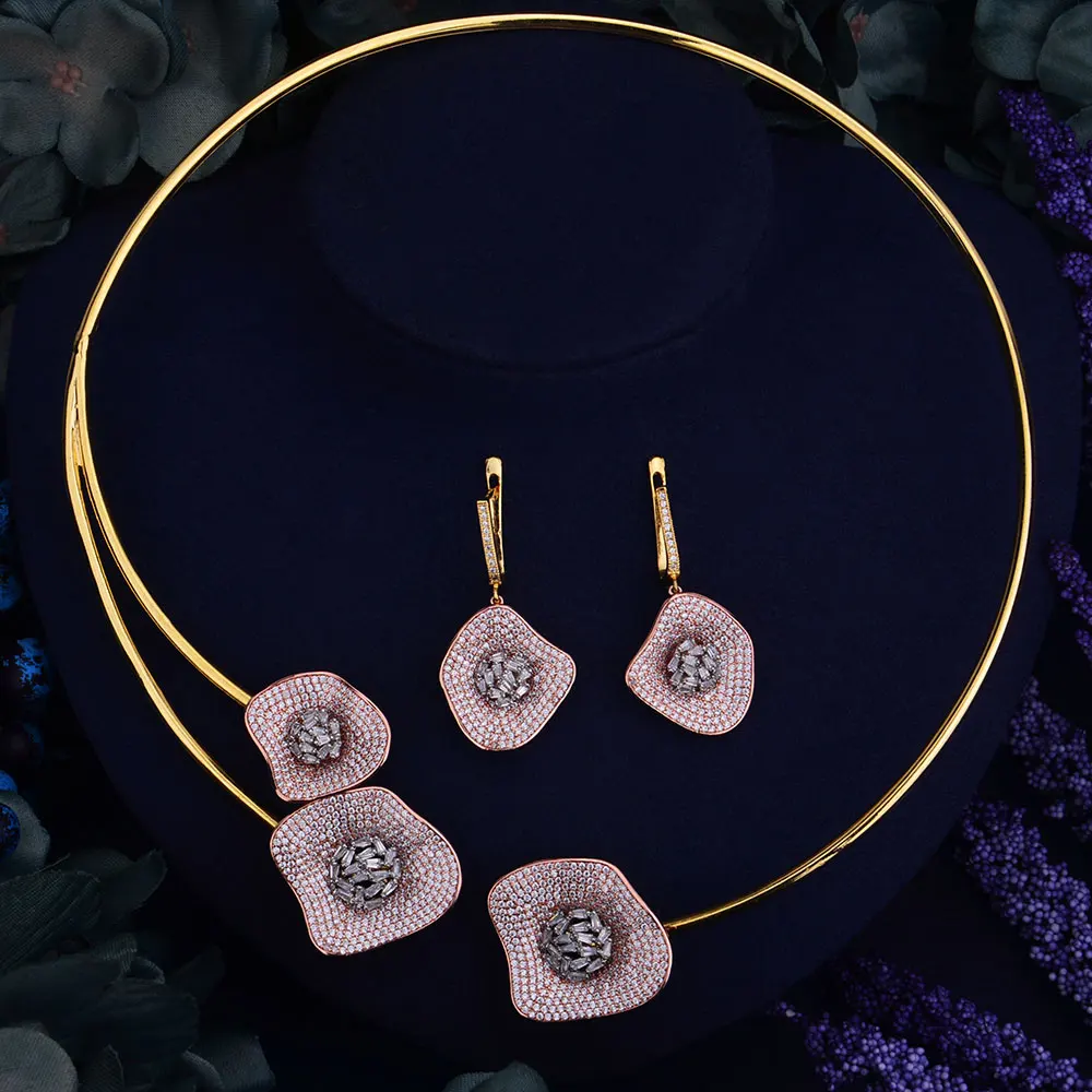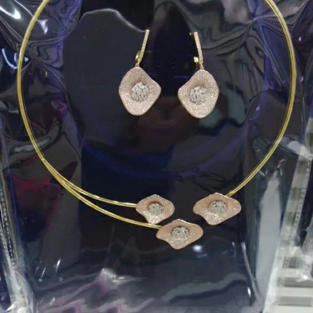 100% 18K Gold/White Gold Plated Wedding Jewelry Set For Women AAA CZ Imitation Diamond Engagement Jewelry Set
