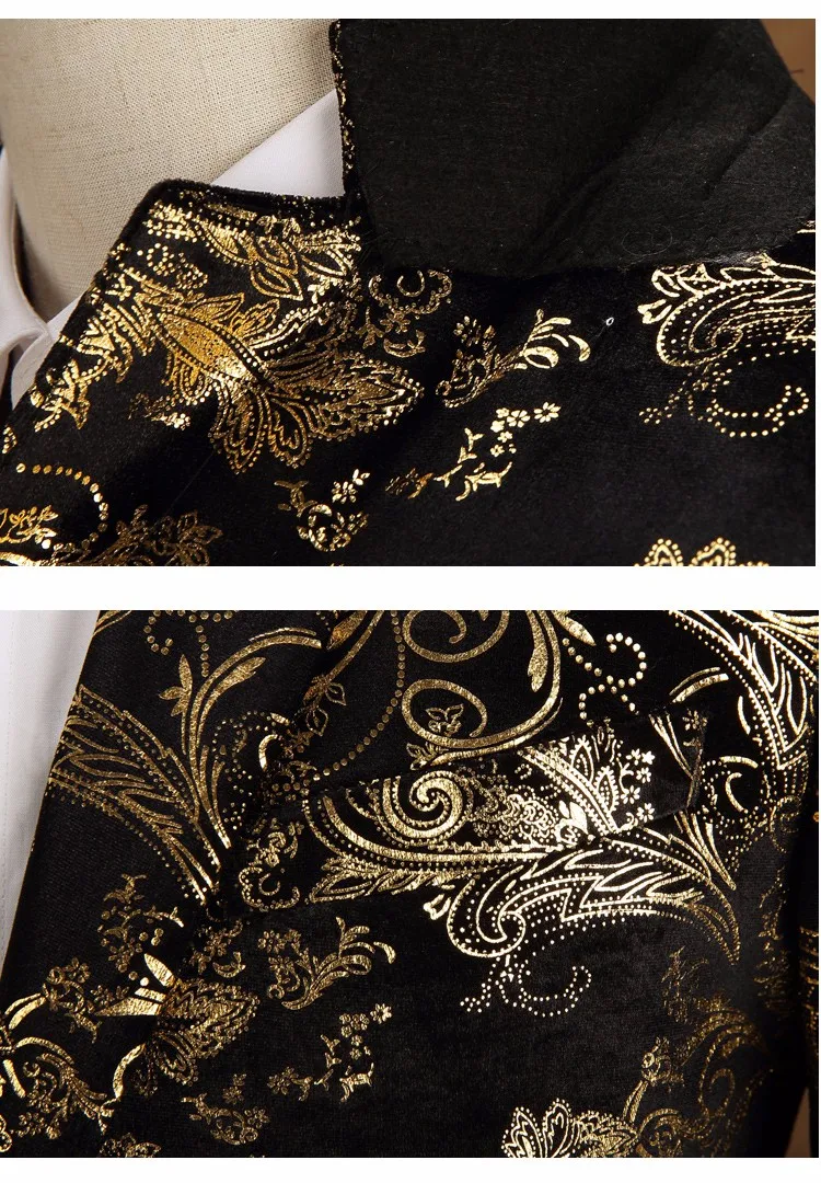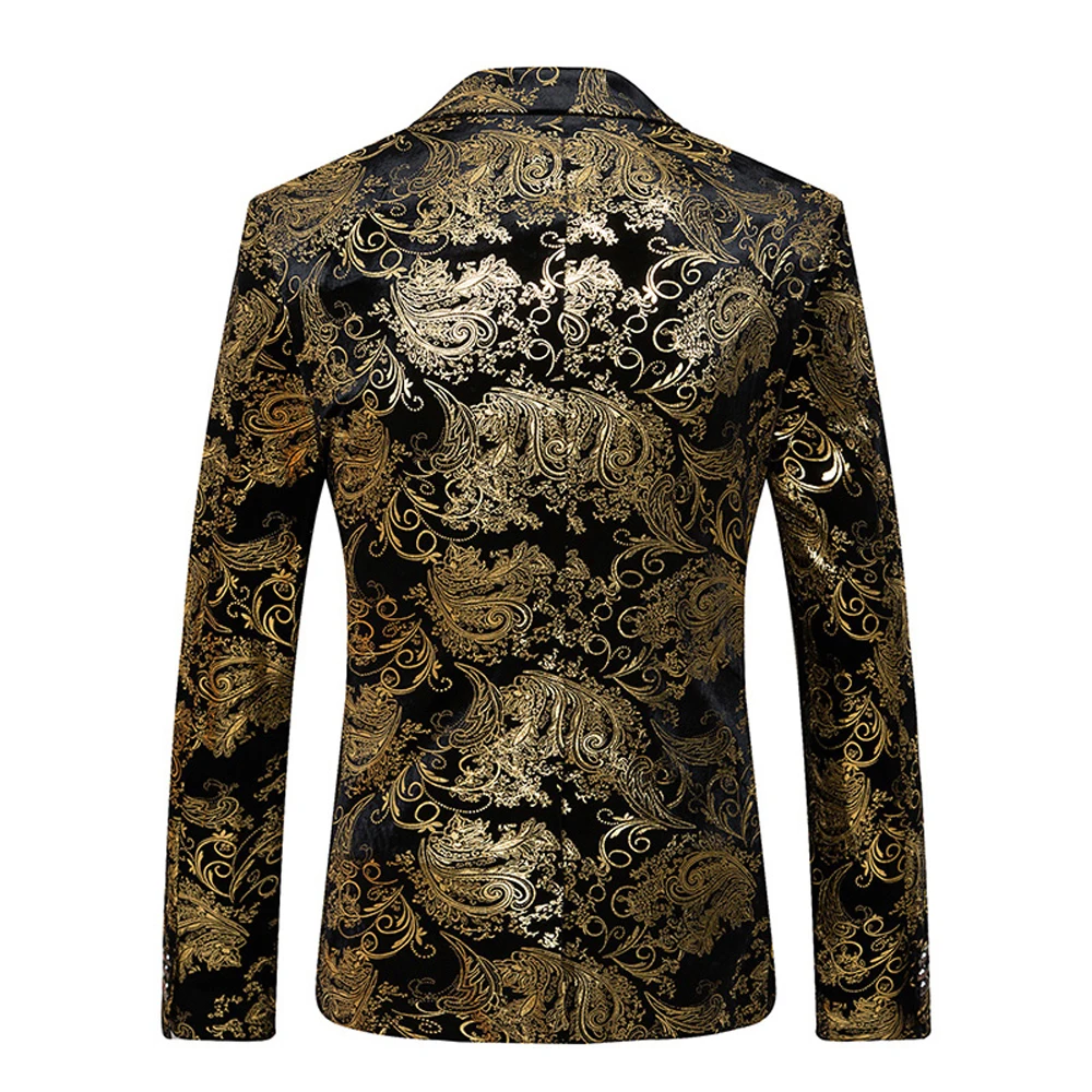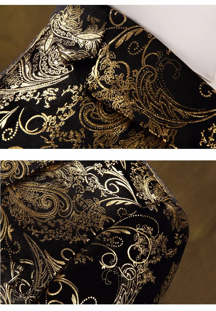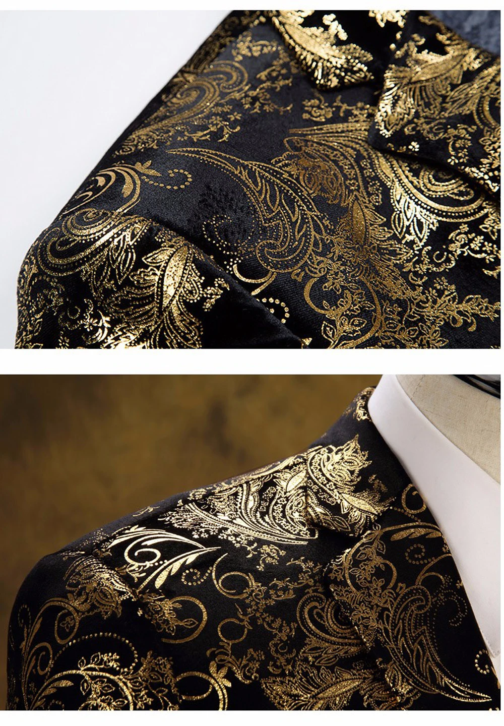 High-end Fashion Gold Blazer Men Floral Casual Slim Blazers 2017 New Fashion Party Business Men Suit Jacket Wedding Dress