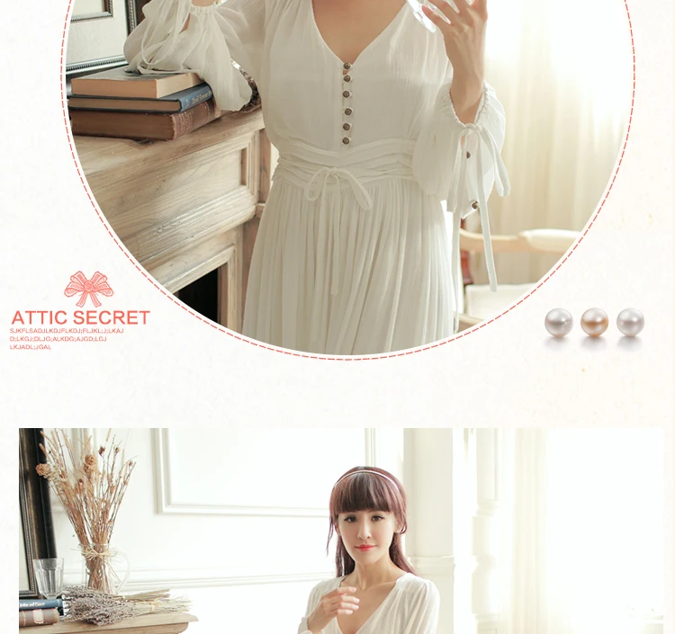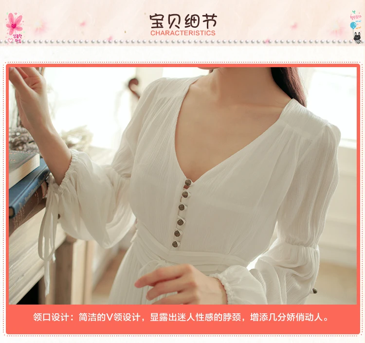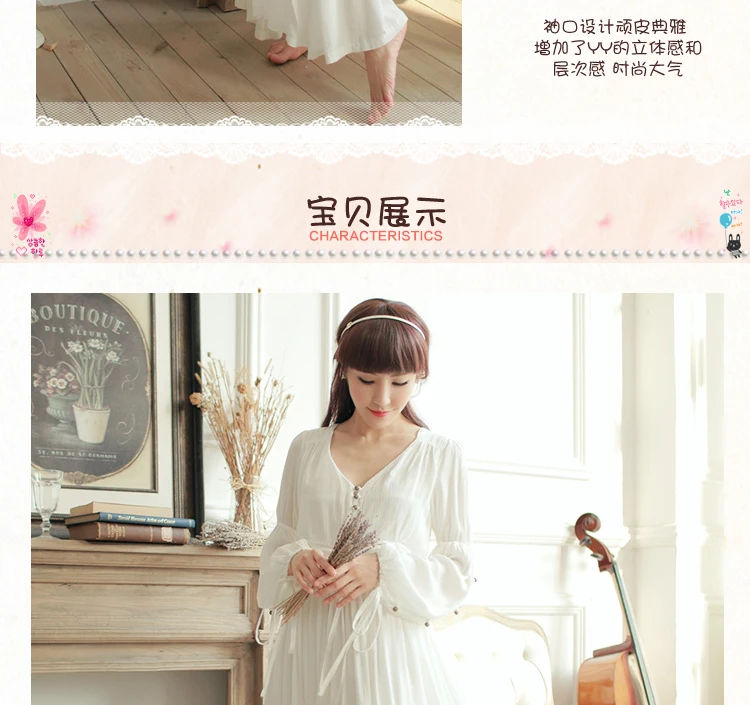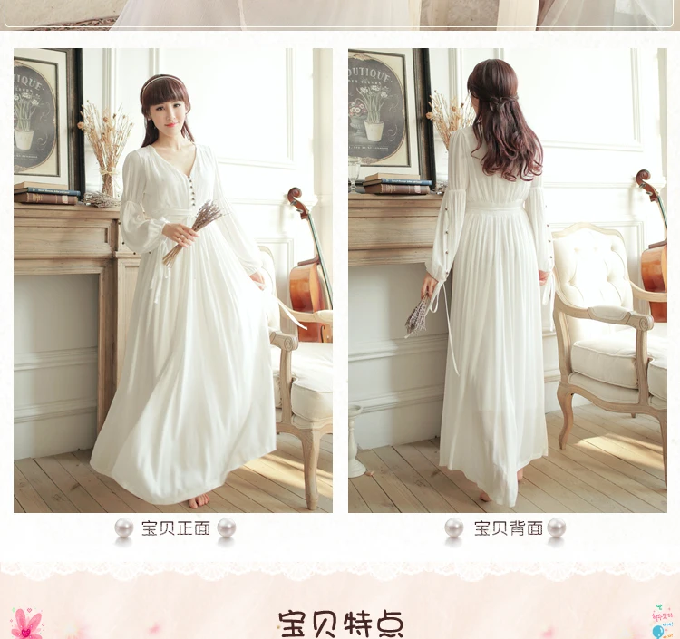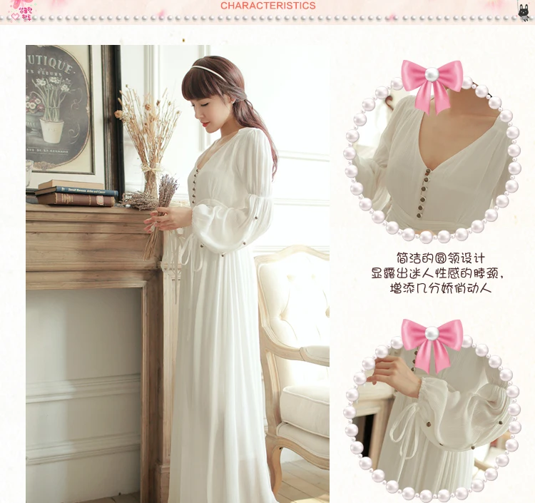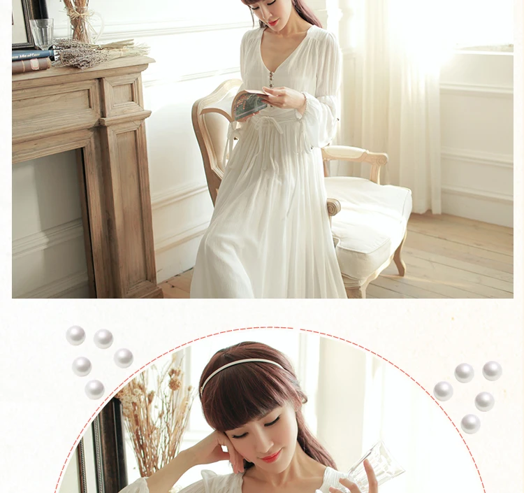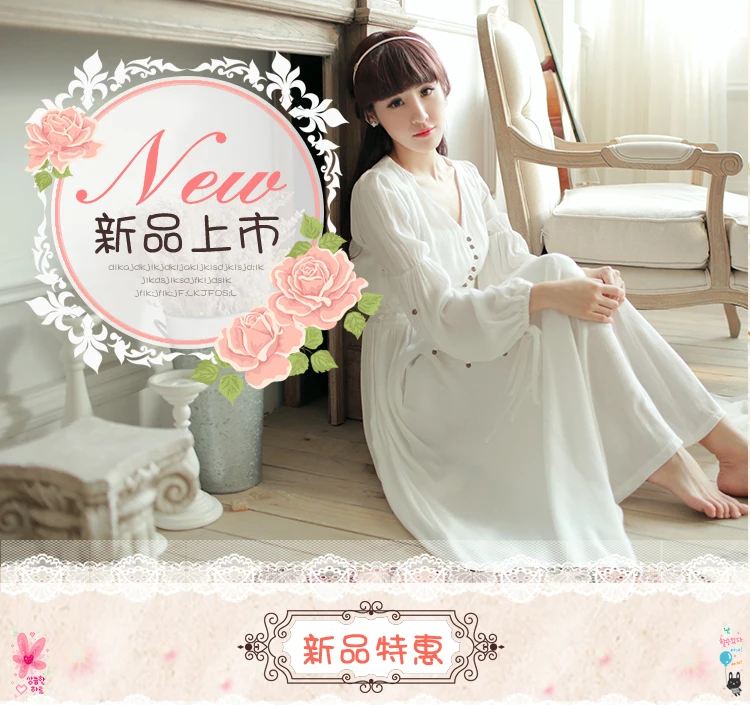HOT SALE Retro Royal Princess Nightgowns Women White Long Sleeping Dress Sexy V-Neck Cotton Long-Sleeved Nightdress