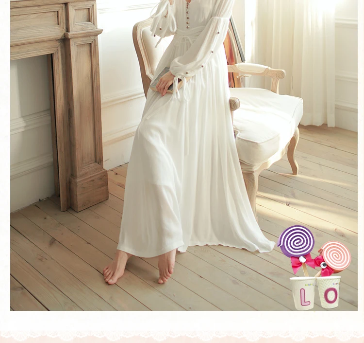 HOT SALE Retro Royal Princess Nightgowns Women White Long Sleeping Dress Sexy V-Neck Cotton Long-Sleeved Nightdress