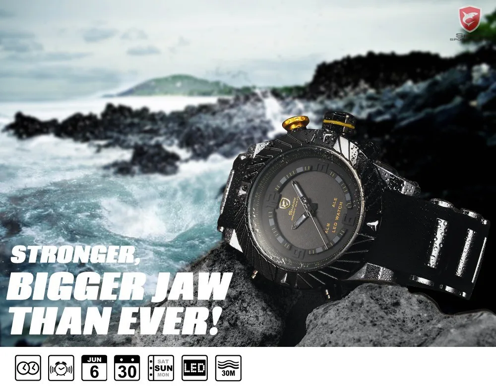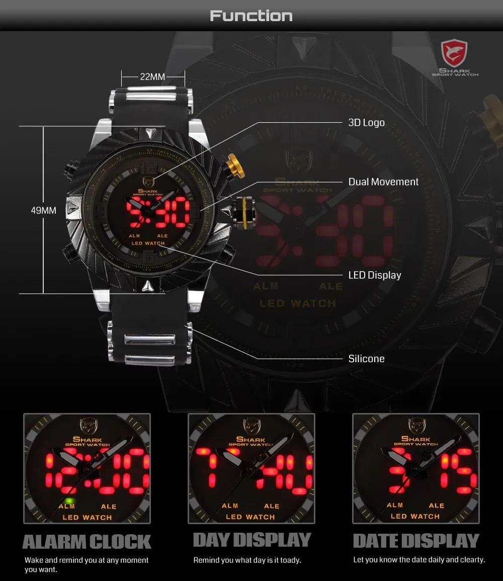 Luxury Brand Goblin Shark Sport Watch Men Relogio Masculino 3D Design Silicone Band LED Digital Black Quartz Mens Watches /SH168