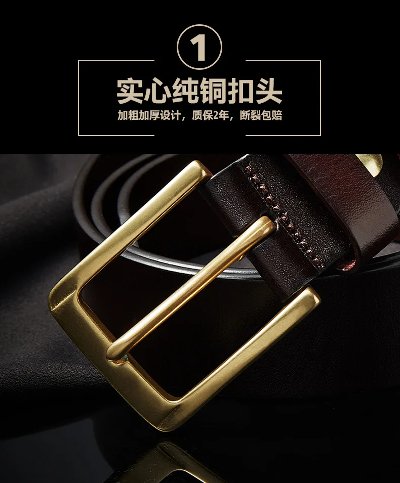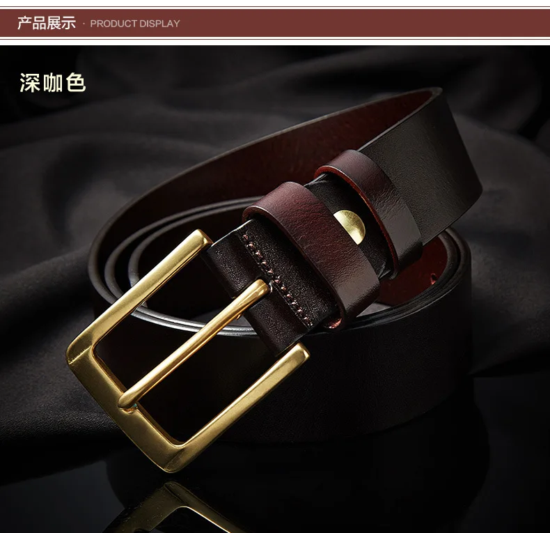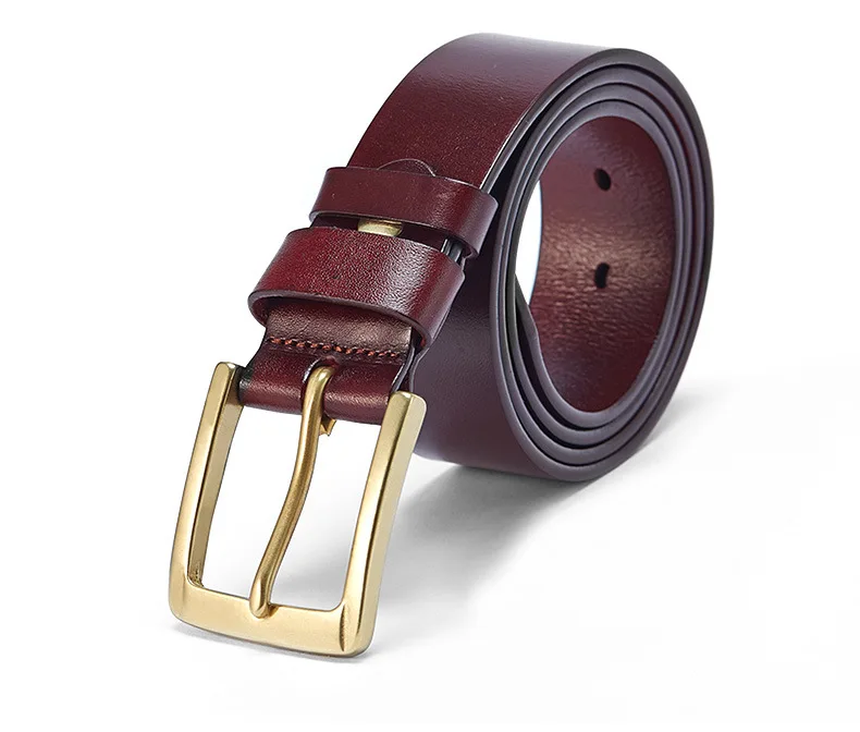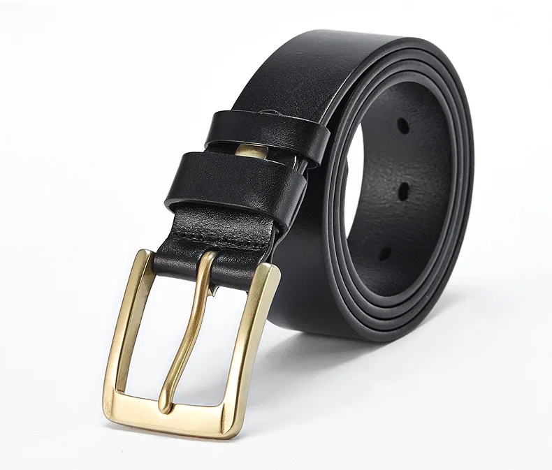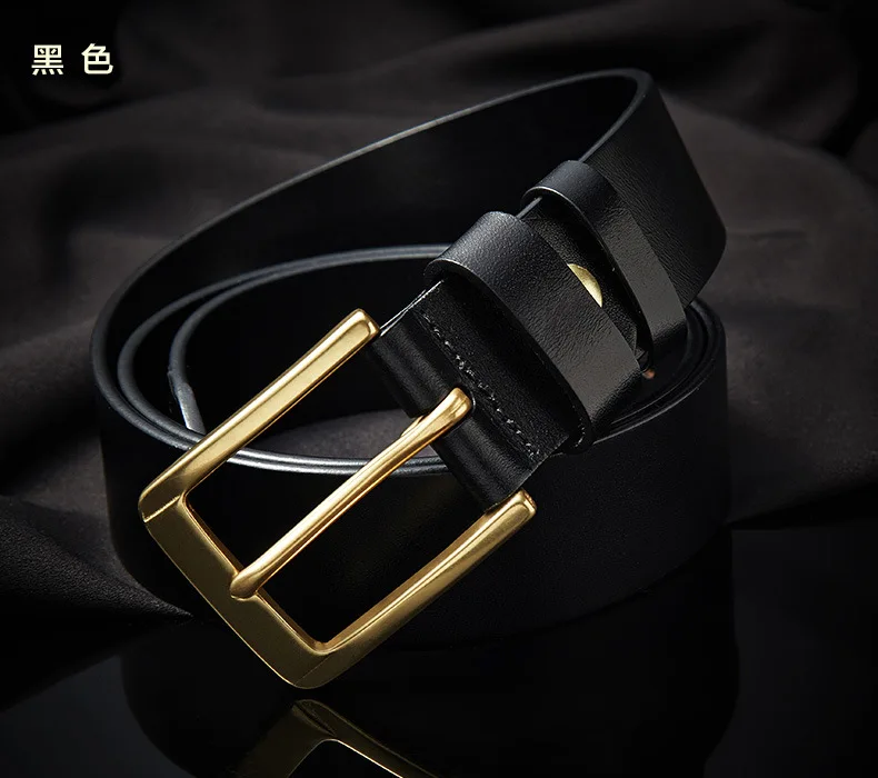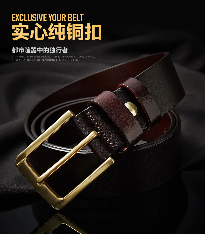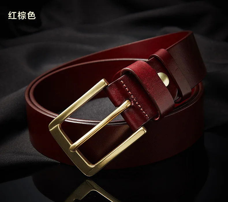 Men’s casual belts 3.8cm wide made of genuine cowskin belt pure copper pin buckles design brand head layer cowhide retro belt