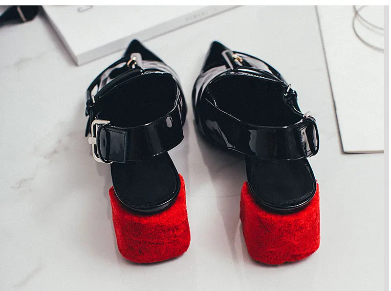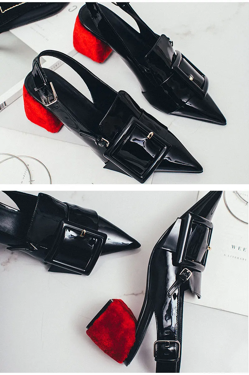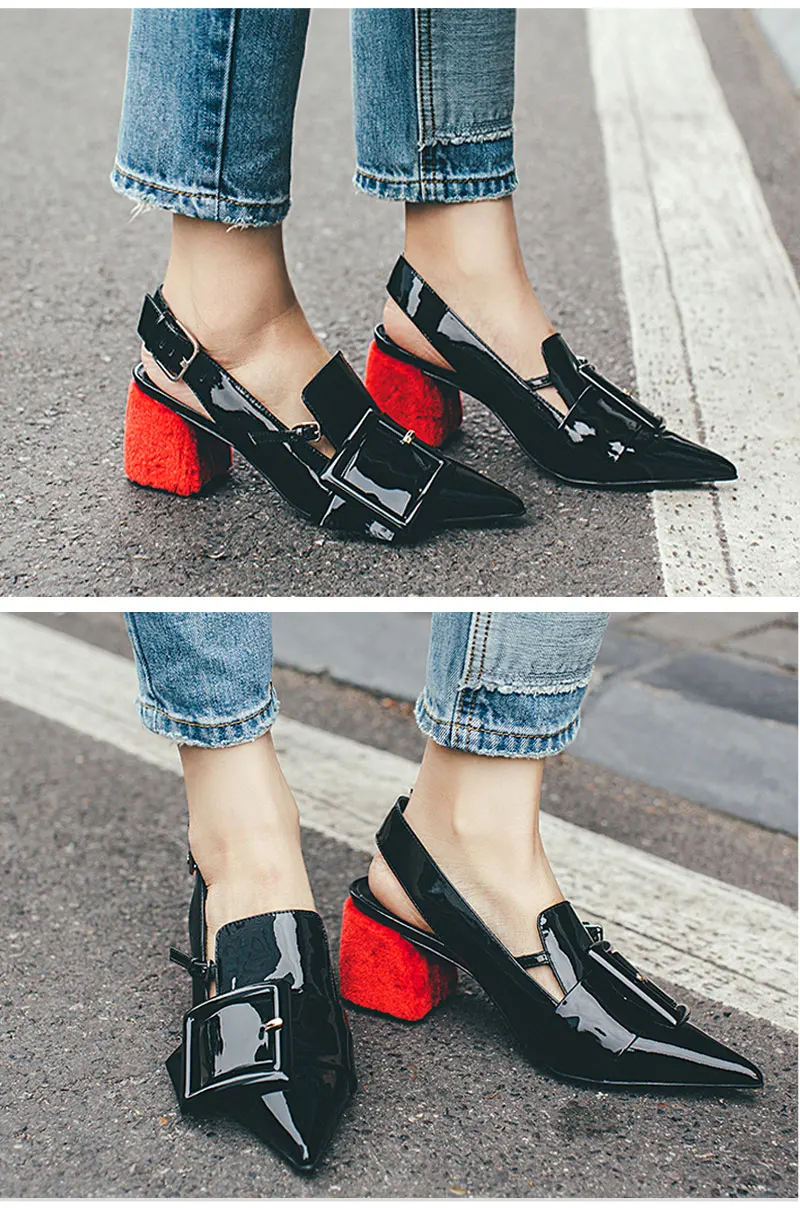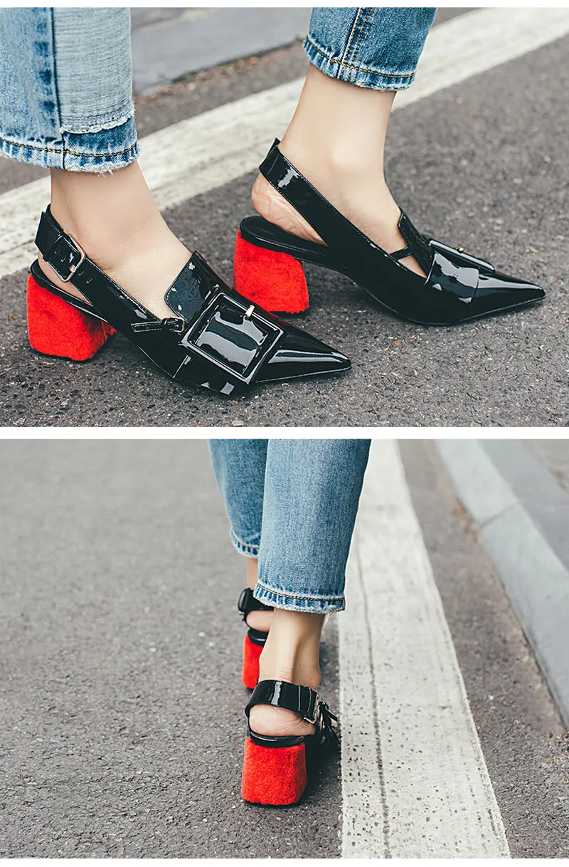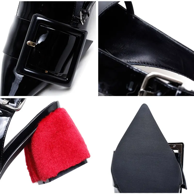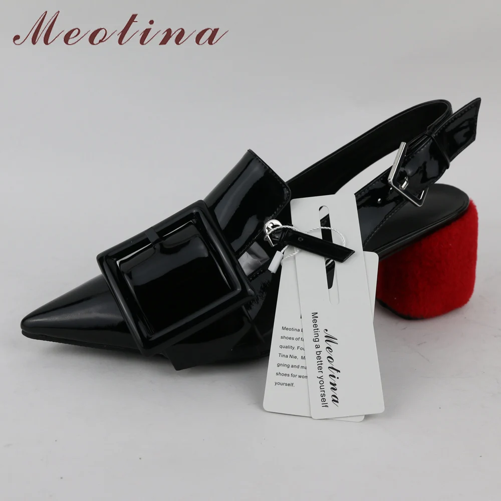 Meotina Brand Desiger Shoes Women Genuine Leather High Heels Spring Summer Pointed Toe Slingbacks Buckle Thick High Heels Black