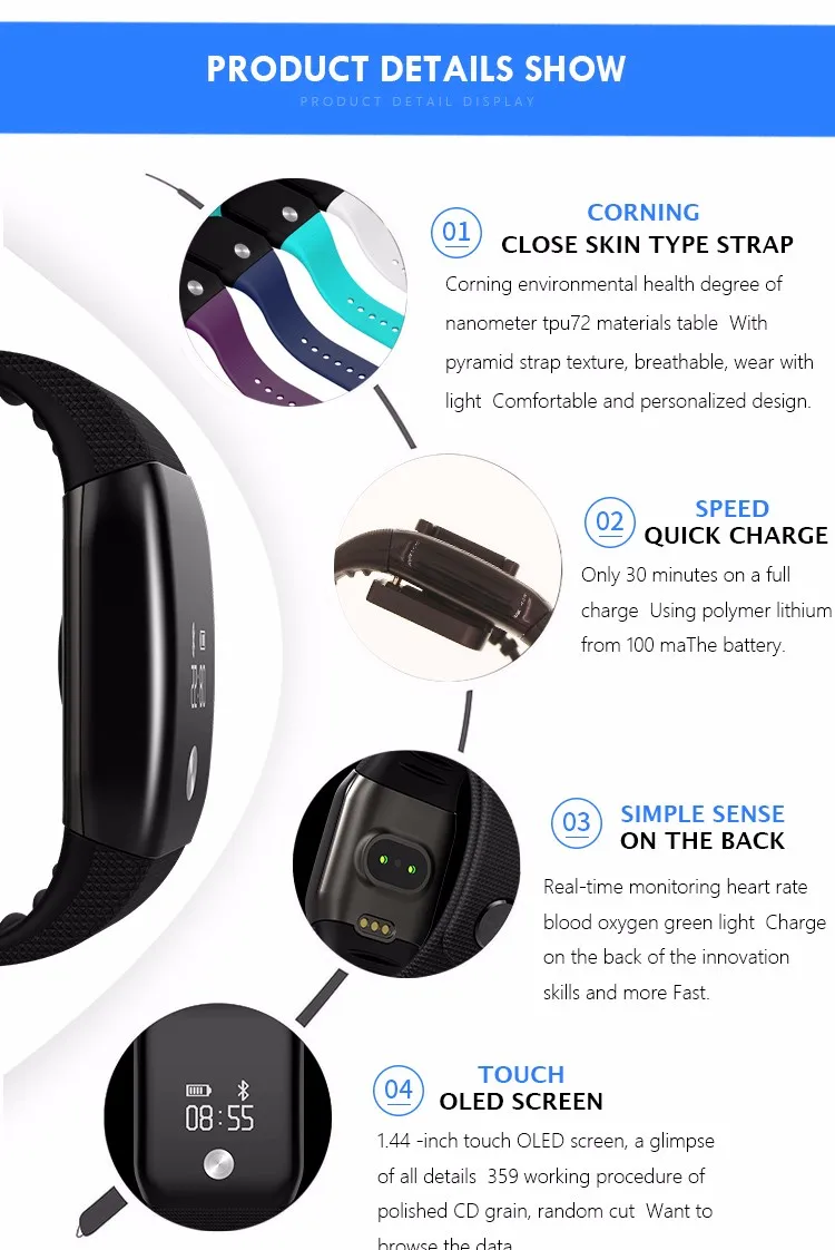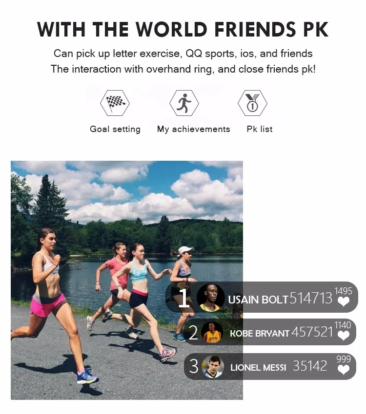 1:Heart rate 2:Blood oxygen 4:Fatigue measurement 5:Sports step counter 6:Energy consumption 7:Daily mileage 8:Sleep monitorin 9:Call ID 10:SMS Reminder 11:APP Reminder 12:Sedentary reminded 13:Alarm clock reminder Kindly Note: For Andriod Phone, OS must be 4.4 or above and Bluetooth must be V4.0 For ios phone, iOS must be 7.0 or above and Bluetooth must be V4.0
