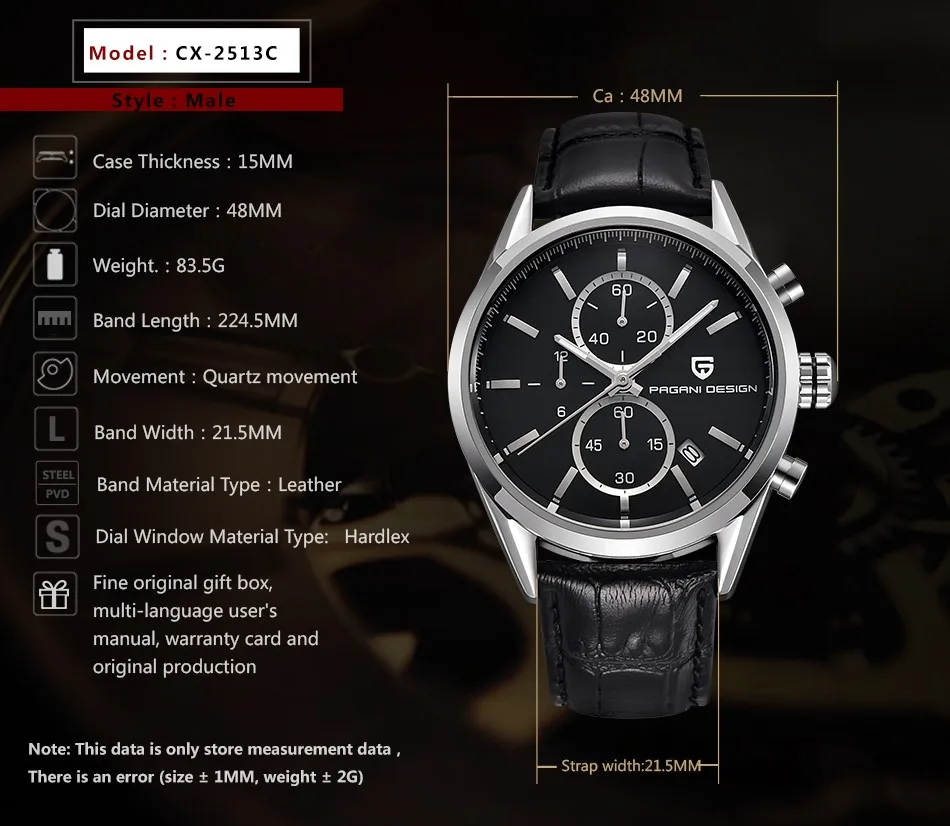PAGANI DESIGN Classic Watches Men’s Watches New Fashion Casual Leather Strap And Stainless Steel Strap Business Men (CX-2513C)