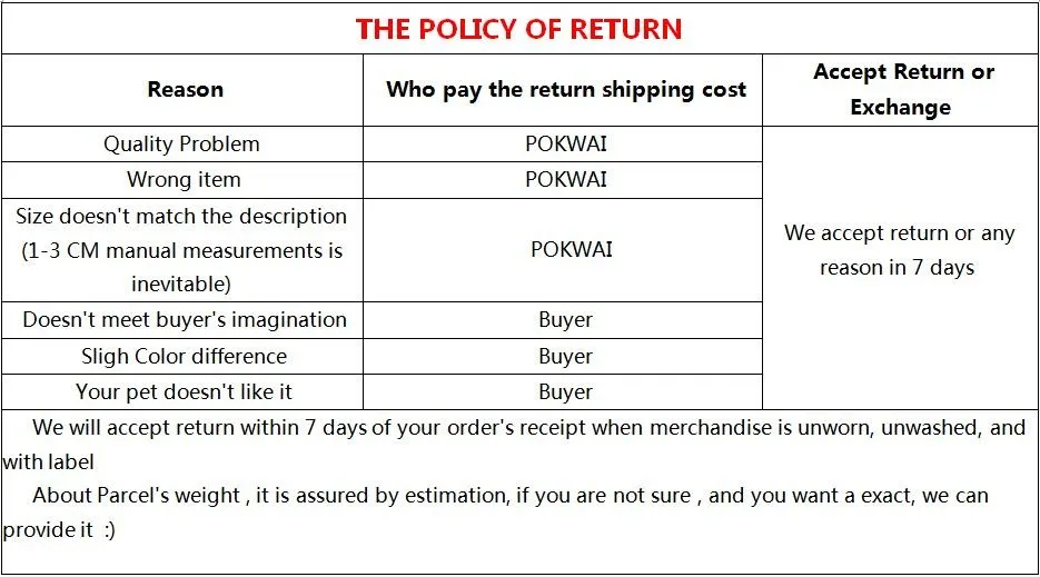 4.There might be some mistakes when we upload our product, we can’t notice it immediately ,if you think something is not right in the description, please let us know , we will fix it immediately , and thnak you in advance..About Parcel’s weight , it is assured by estimation, if you are not sure , and you want a specific a number, we can weigh it and provide it 🙂 |