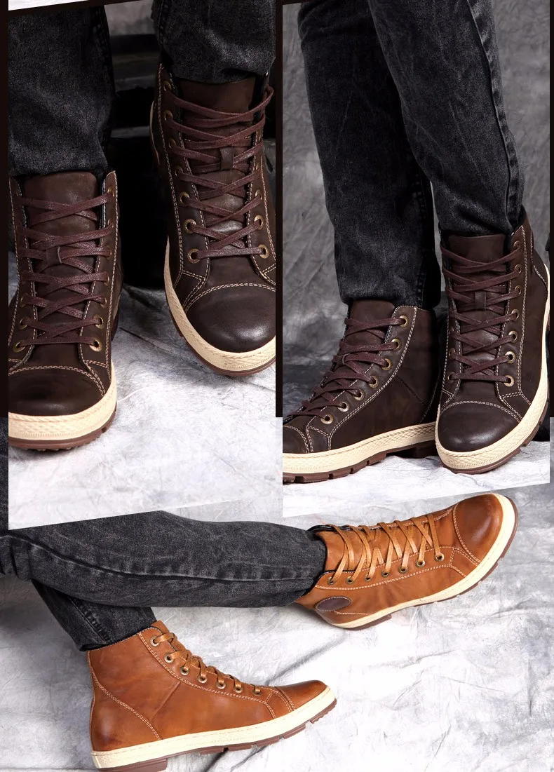 SERENE 2017 Men Boots Leather Lace-Up Men Fashion Shoes Retro Design Boots Tooling Boots Casual Botas Plus Size Warm Winter Boot