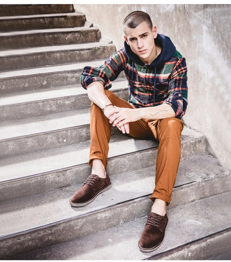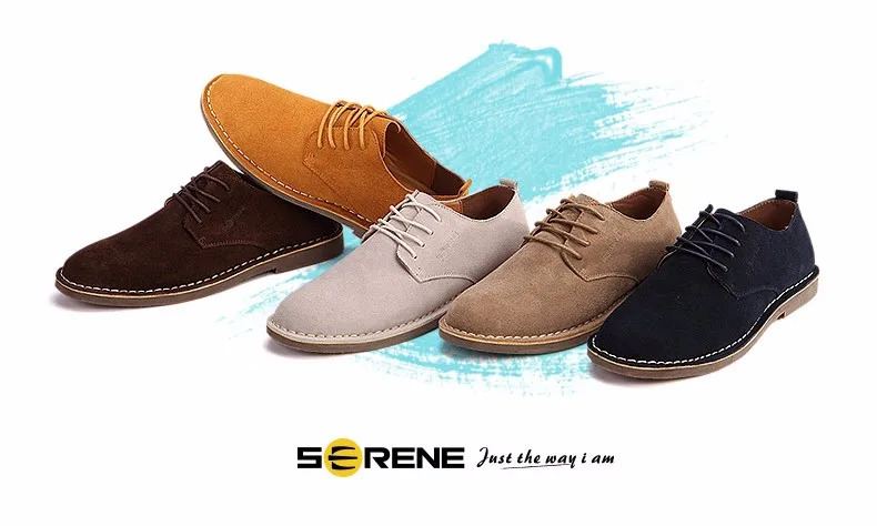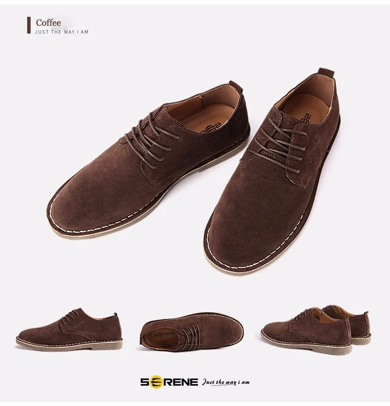 SERENE Band Mens Oxford Shoes Suede Leather Flats Fashion Men Lace-up Casual Loafers Business Shoes Desert Chaussure Autumn