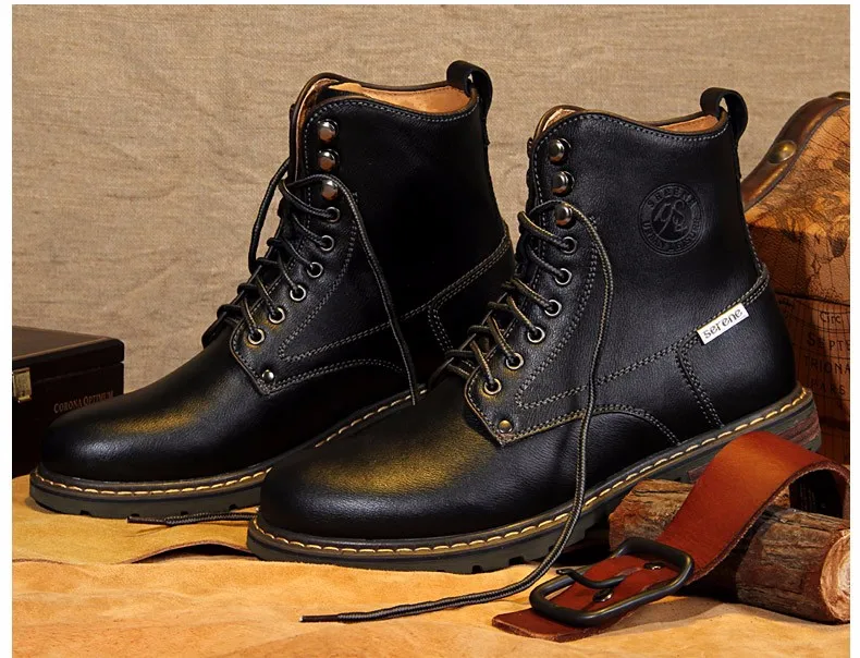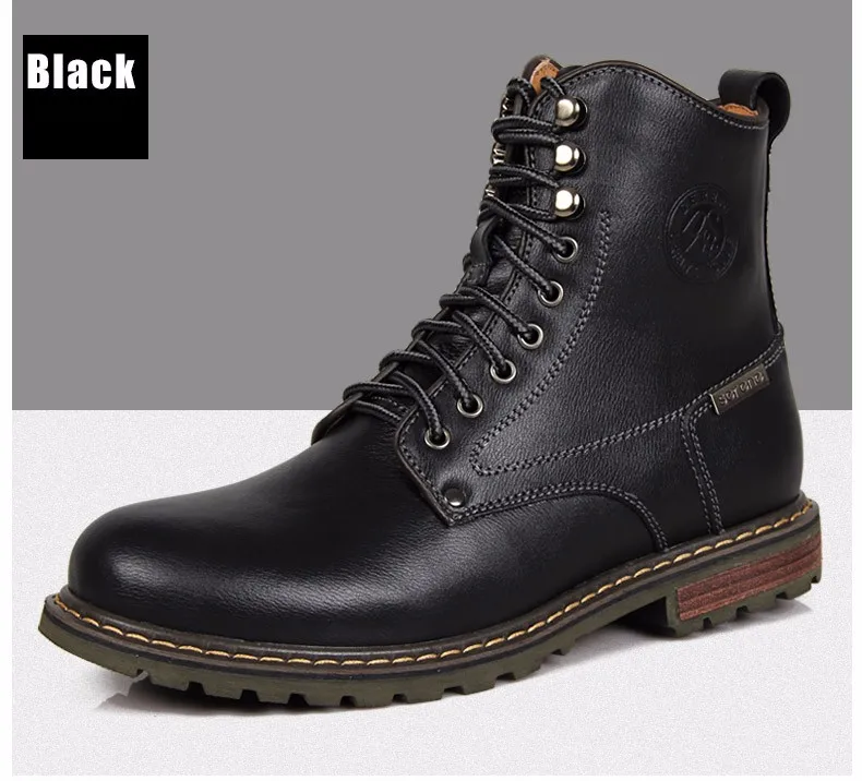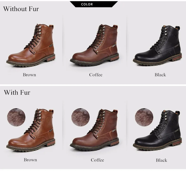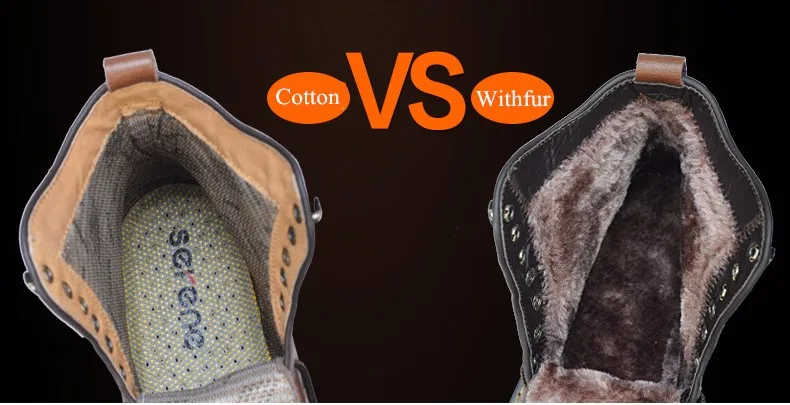 SERENE Brand Winter Mens Boots Fur Warm Cow Leather Boots British Retro Winter Tooling Boots Mens Shoes Lace Up Army Boots 3123