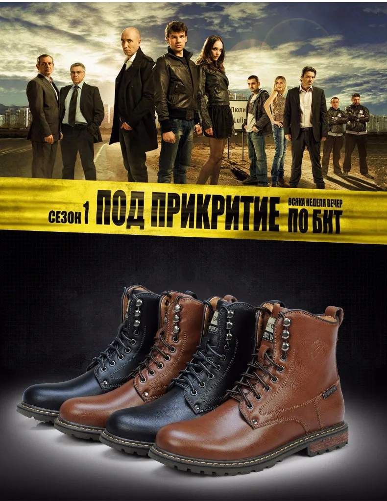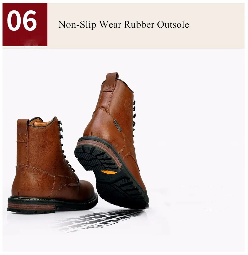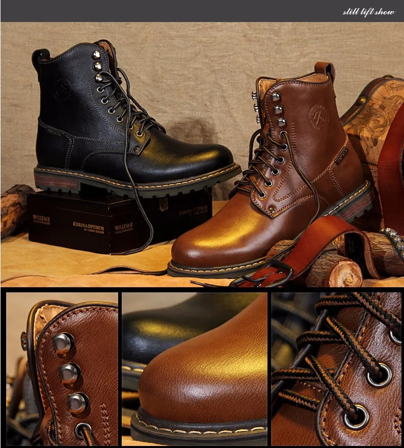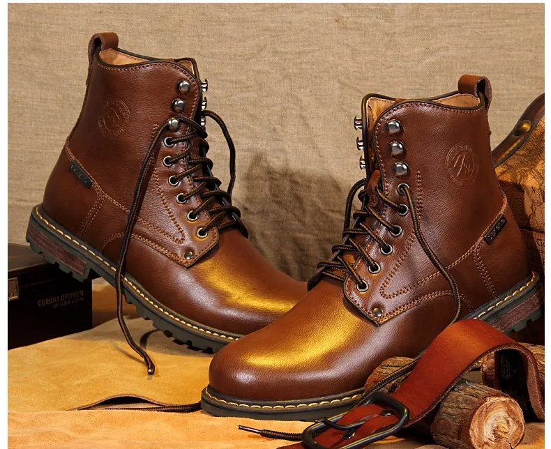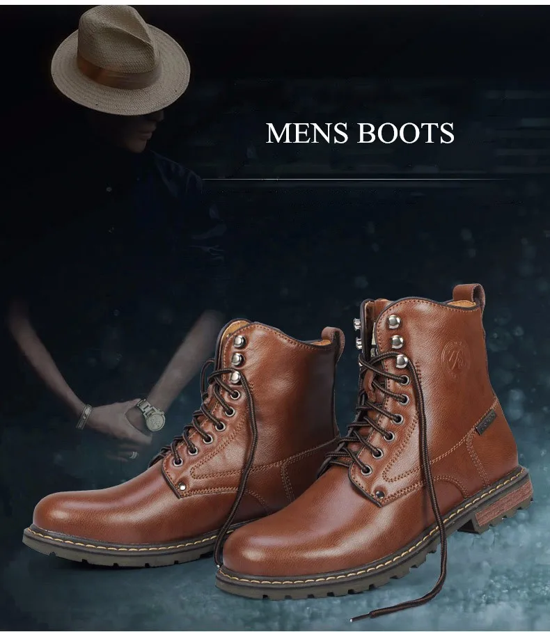 SERENE Brand Winter Mens Boots Casual Cow Leather Boots British Retro Mid-Calf Tooling Boots Mens Shoes Lace Up Army Boots