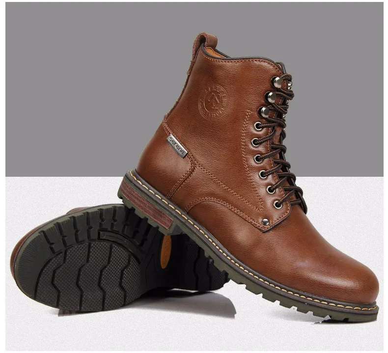 Be the first to review “SERENE Brand Winter Mens Boots Fur Warm Cow Leather Boots British Retro Winter Tooling Boots Mens Shoes Lace Up Army Boots 3123”