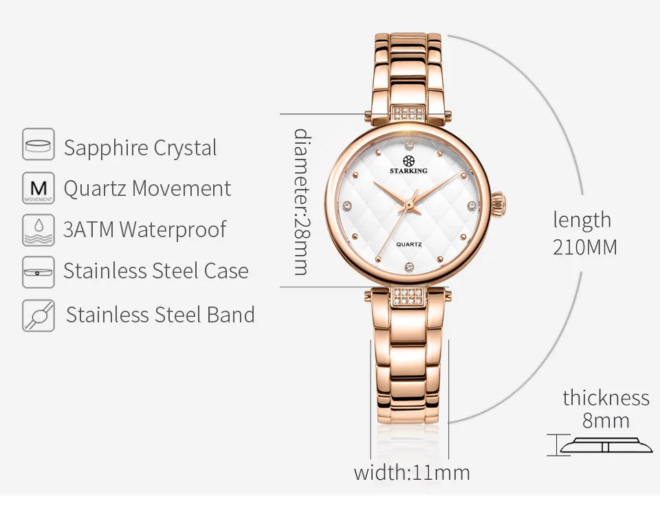 STARKING 2017 Fashion Women Dress Watches Luxury Women’s Casual Ladies Rhinestone Quartz Watch Wristwatches Relogio Feminino