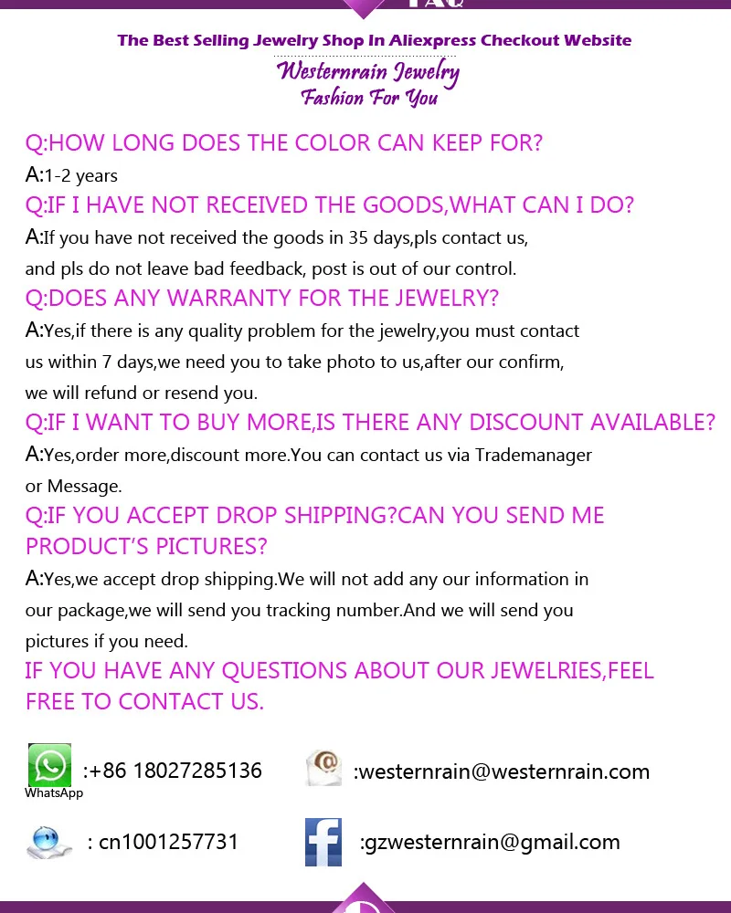 | Jewelry Sets Type: | Necklace/Earrings/Bracelet |