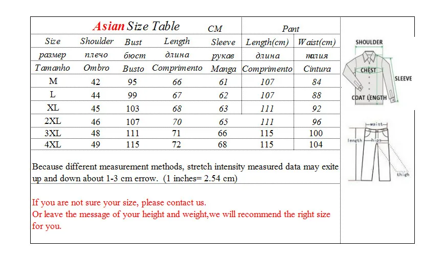3.If you are not sure your size, please contact us.Or leave the message of your height and weight,we will recommend the right size for you.