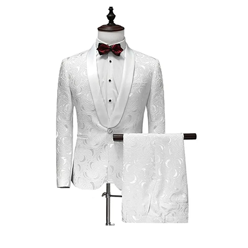 YFFUSHI Men Suit One Buttom 2 Pieces Homme Mariage White Jacquard Tuxedo Shawl Collar Mens Suits Wedding Groom Party Dress